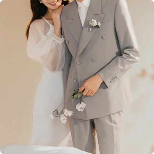 신랑님의 수트 컬러는 사진 속 모델처럼 라이트 그레이나 베이지 톤으로 맞추면,