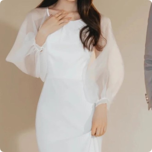 - 미니멀한 액세서리와 내츄럴 헤어로 드레스의 우아함을 극대화할 수 있습니다.